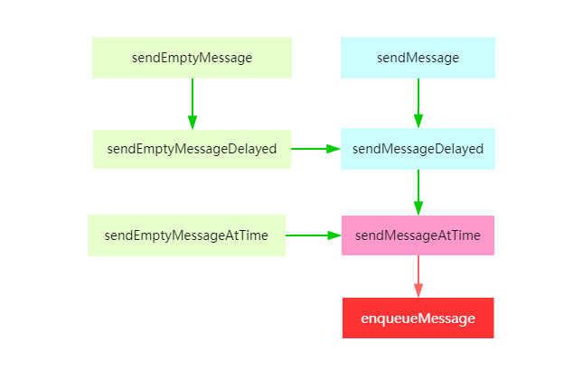 可以看出,当我们调用Handler进行发送消息时,最终都会调用sendMessageAtTime()方法,最后调用enqueueMessage( ) 发送到消息队列。